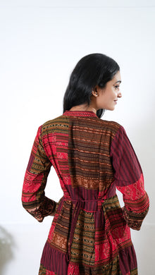 Niraa cotton angrakha kurti- Crimson
