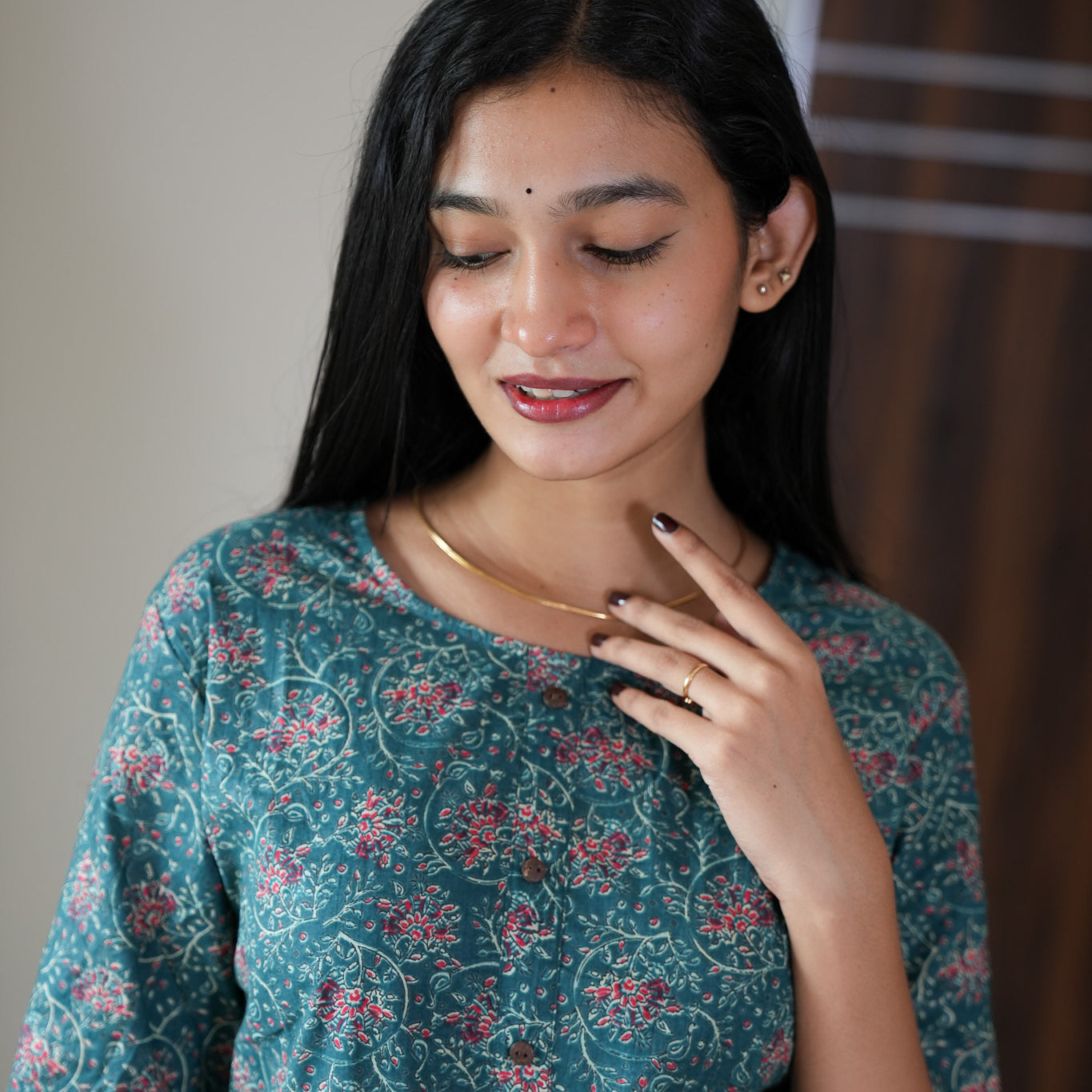 This short kurti is pure cotton, light weight and breathable making it apt for this summer. It can be paired with jeans, cotton pants or even a skirt.