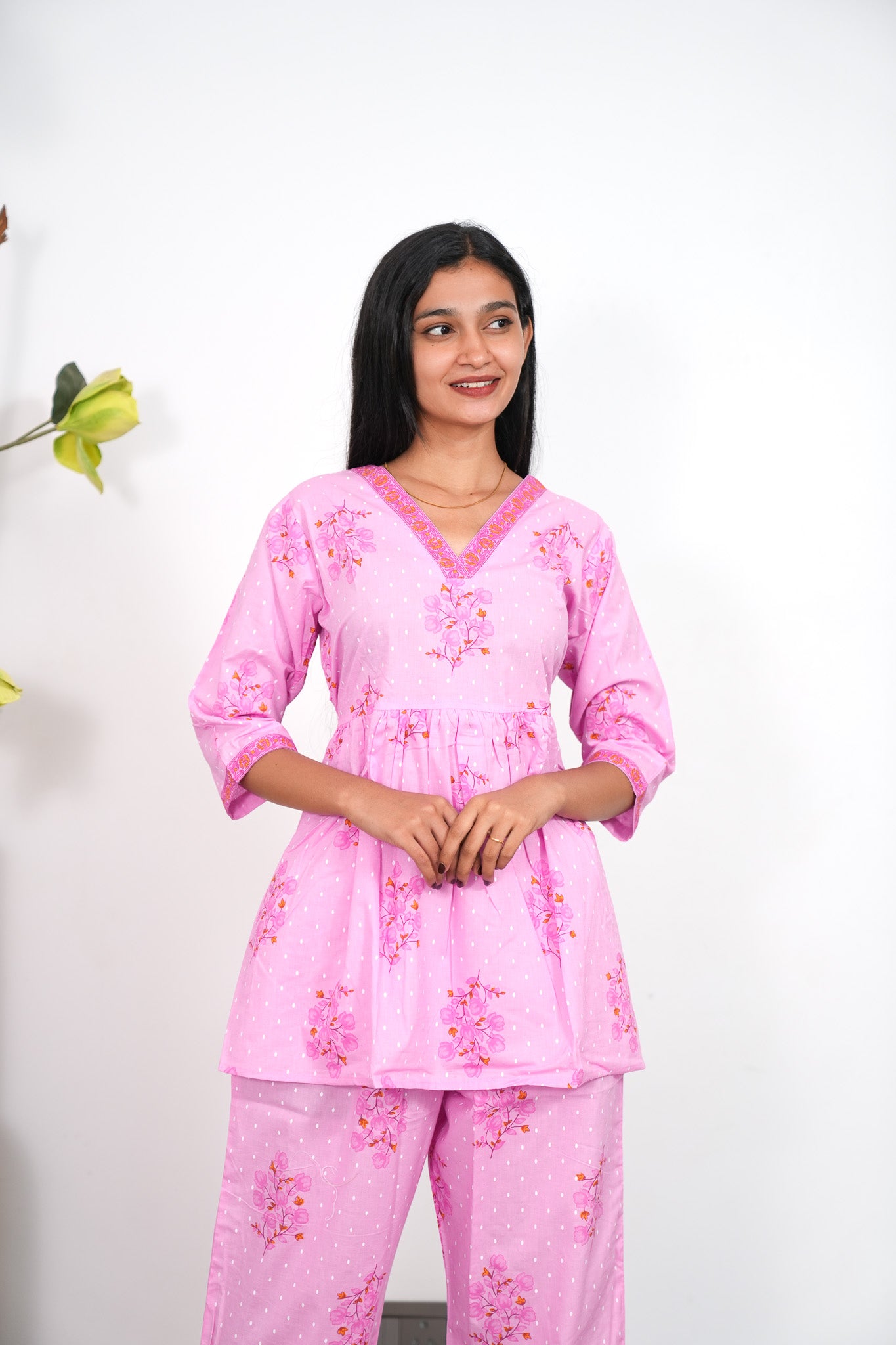 Baby pink cotton co-ords set which can be paired together or with jeans for a easy breezy summer outfit.