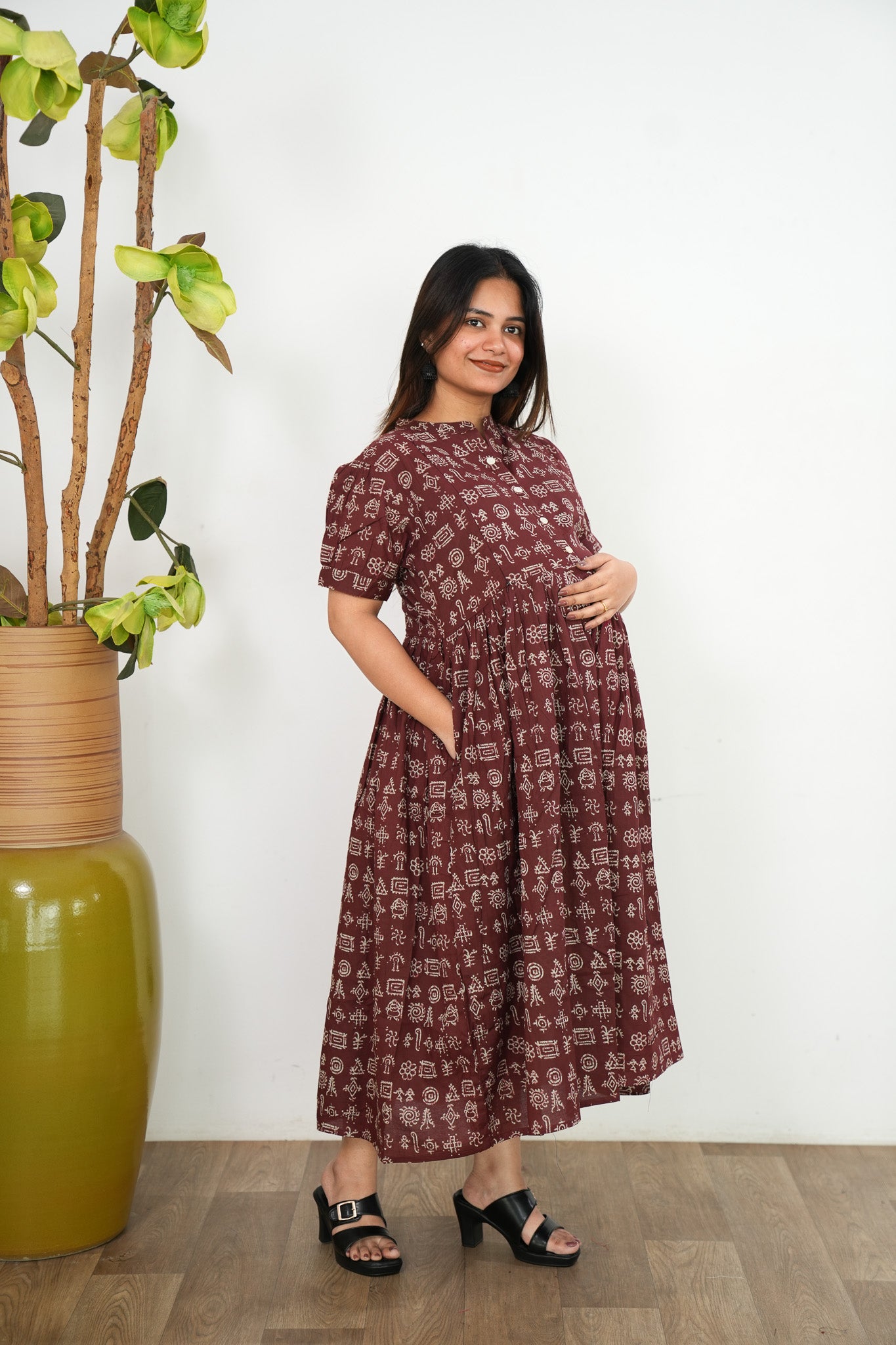 Deep brown cotton maternity nursing wear