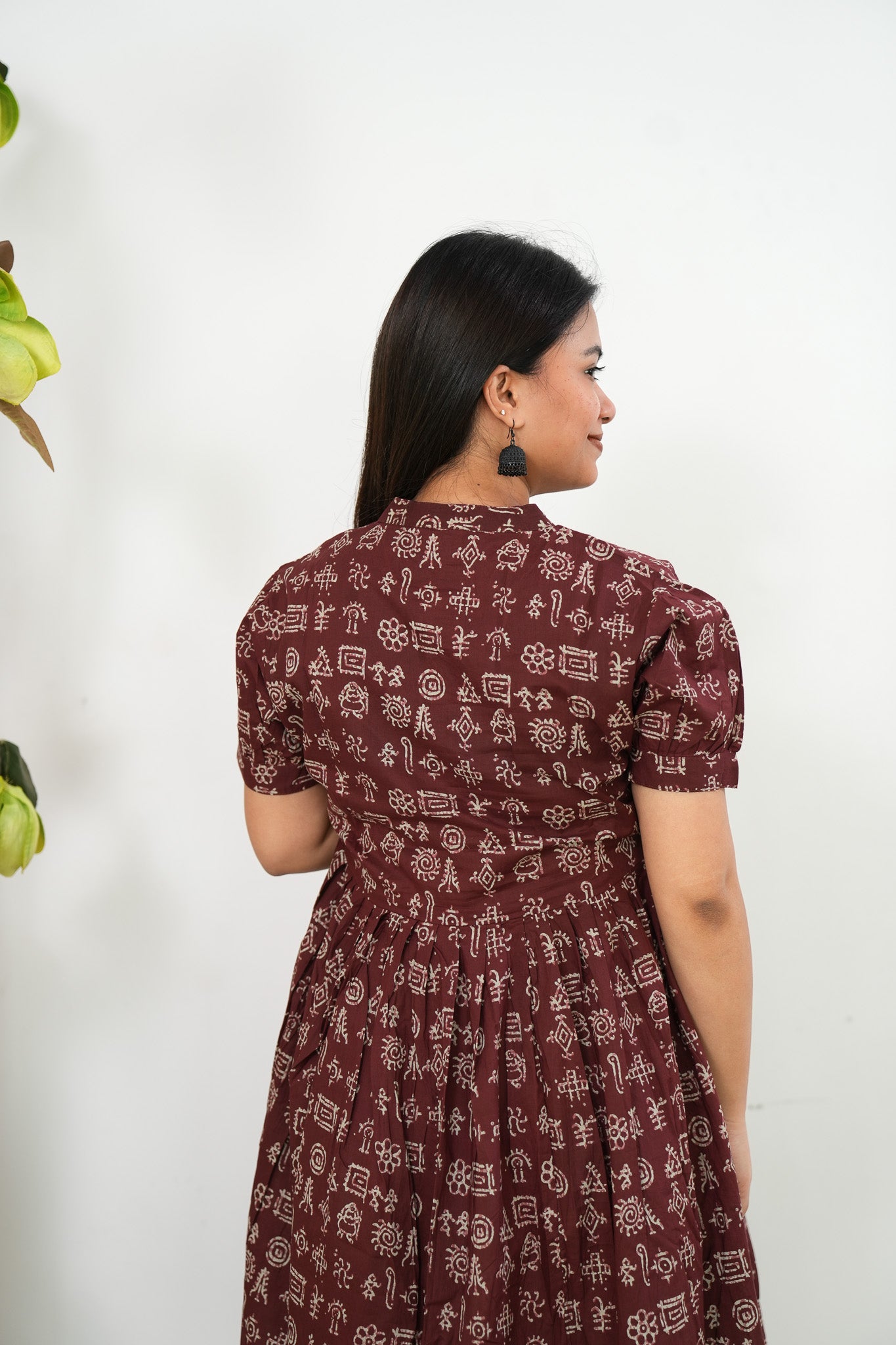 Maroon paisley cotton shirt dress