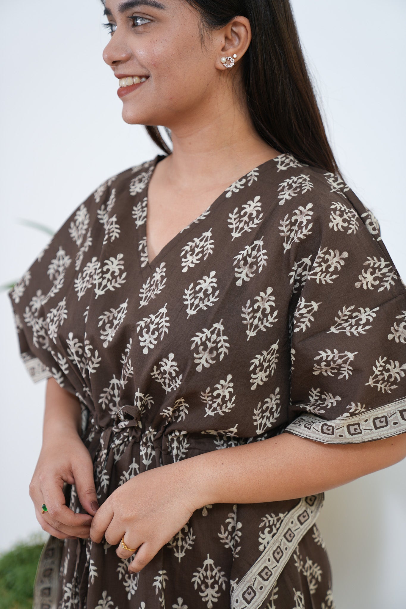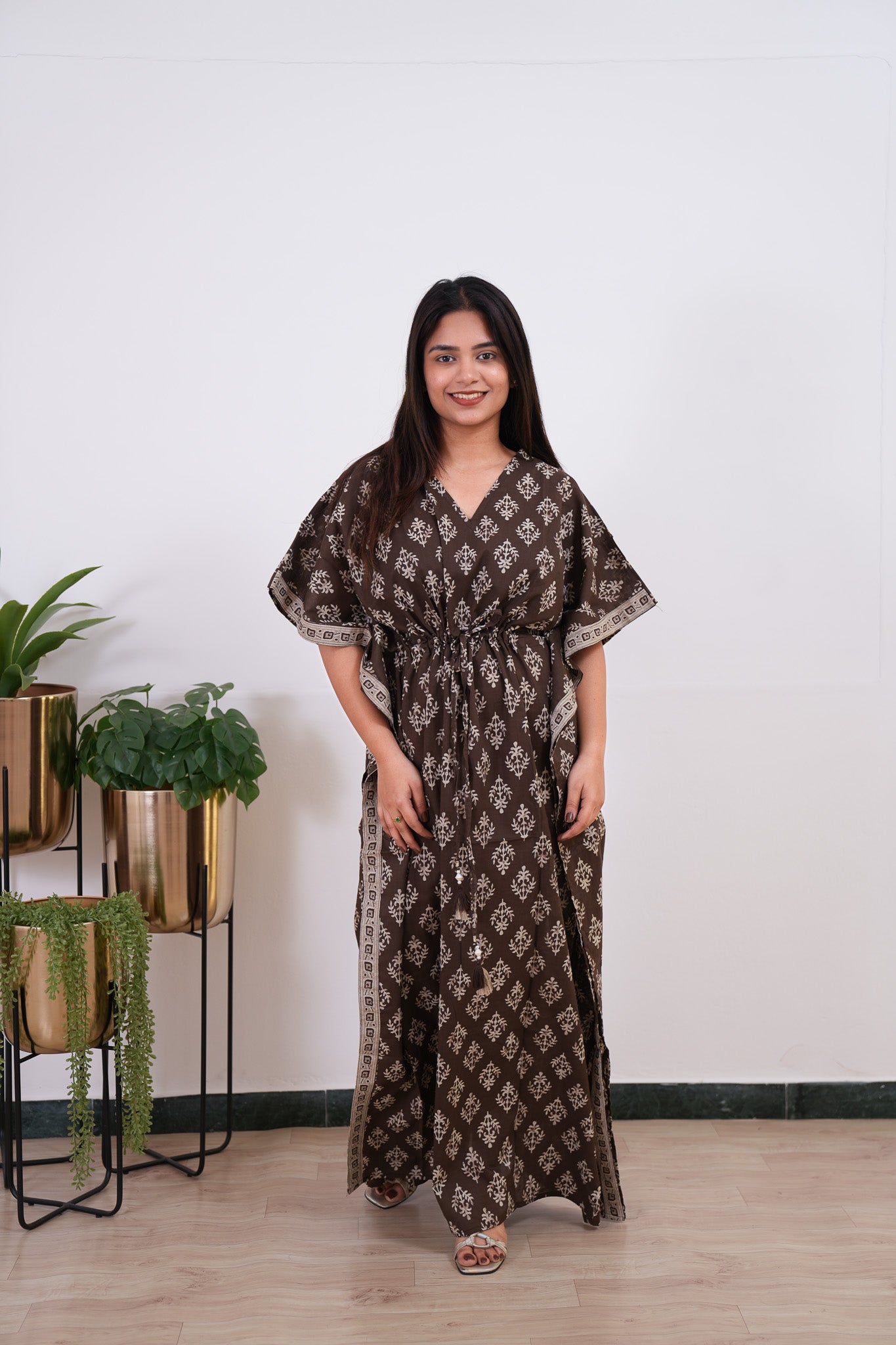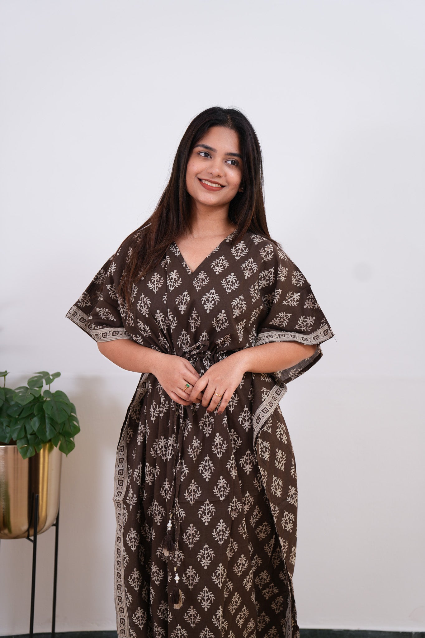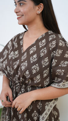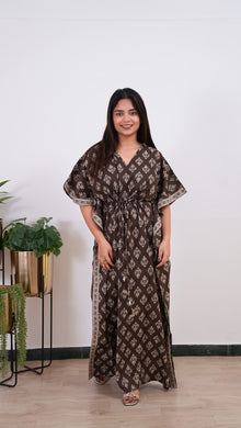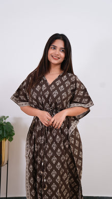 Coffee hand block pure cotton kaftan