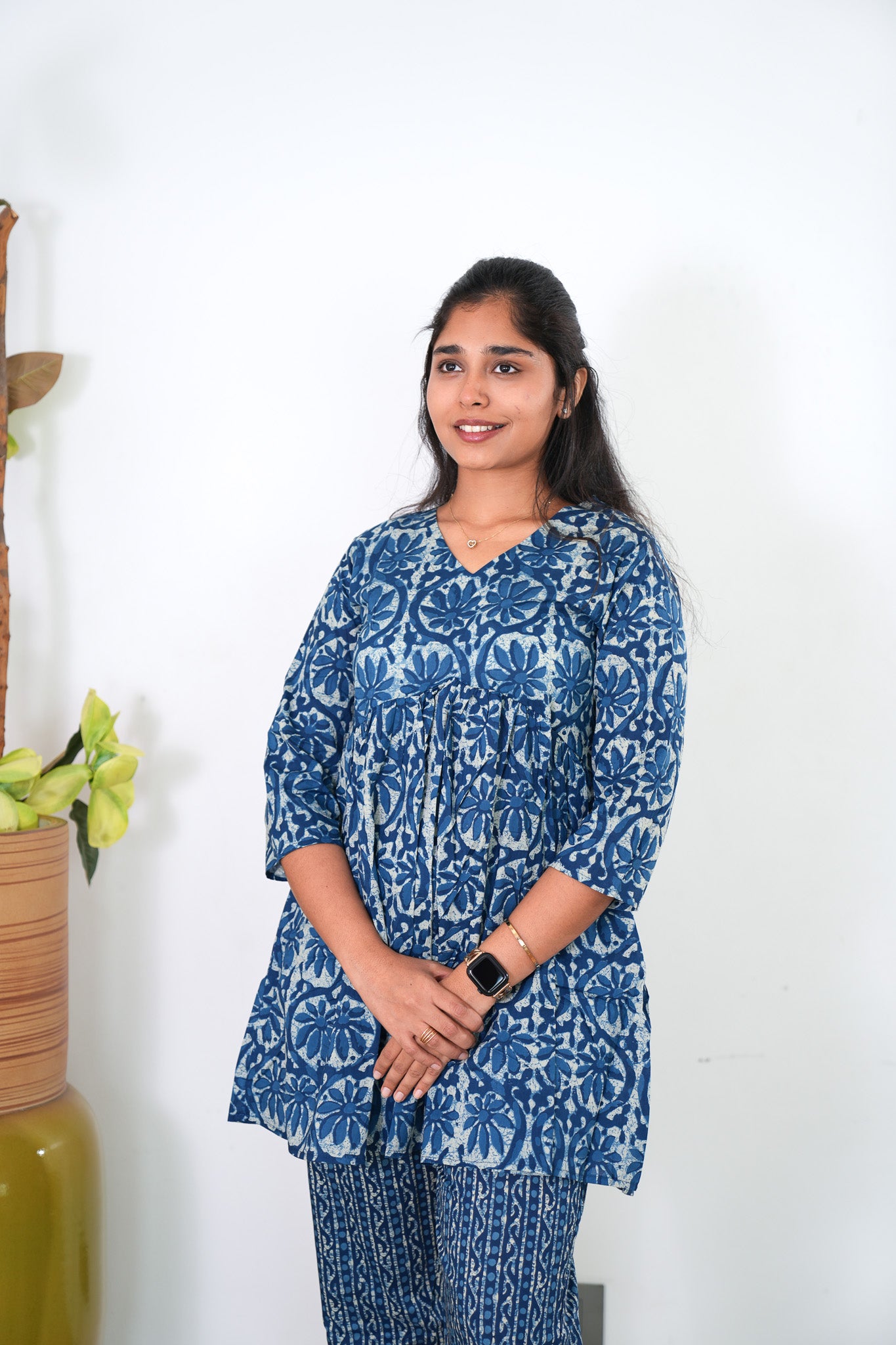 Niraa cotton angrakha kurti - Indigo