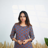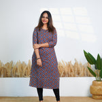 Blue round neck cotton kurti