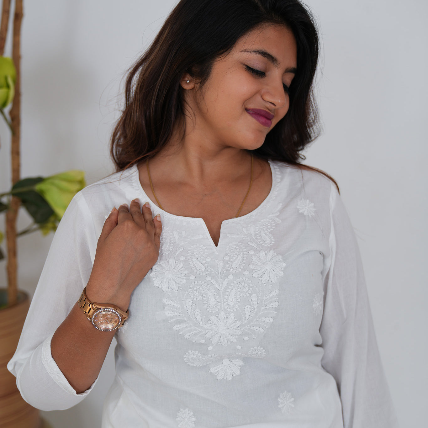 Black coloured cotton short kurti with round neck and elbow length sleeves, they are extremely breathable and light weight making it perfect for all day comfort.
