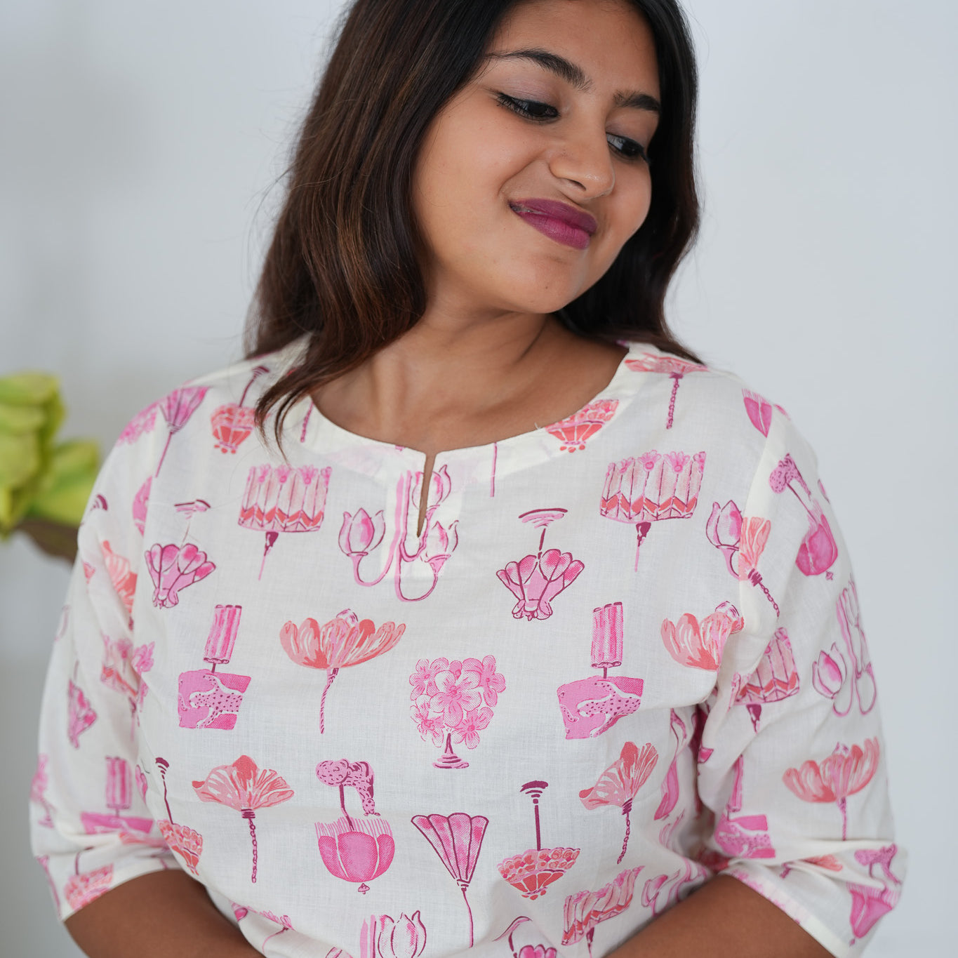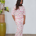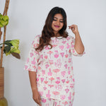 These Co-ords are so cozy, comfortable and chic making it perfect to relax at home or sleep in them. The top has a round neck with elbow length sleeves. Pant comes with elastic and has pockets.