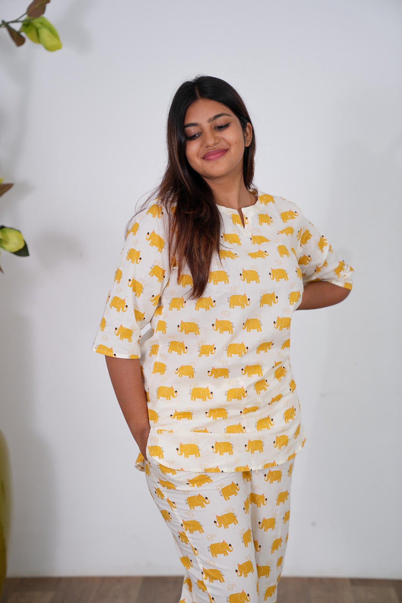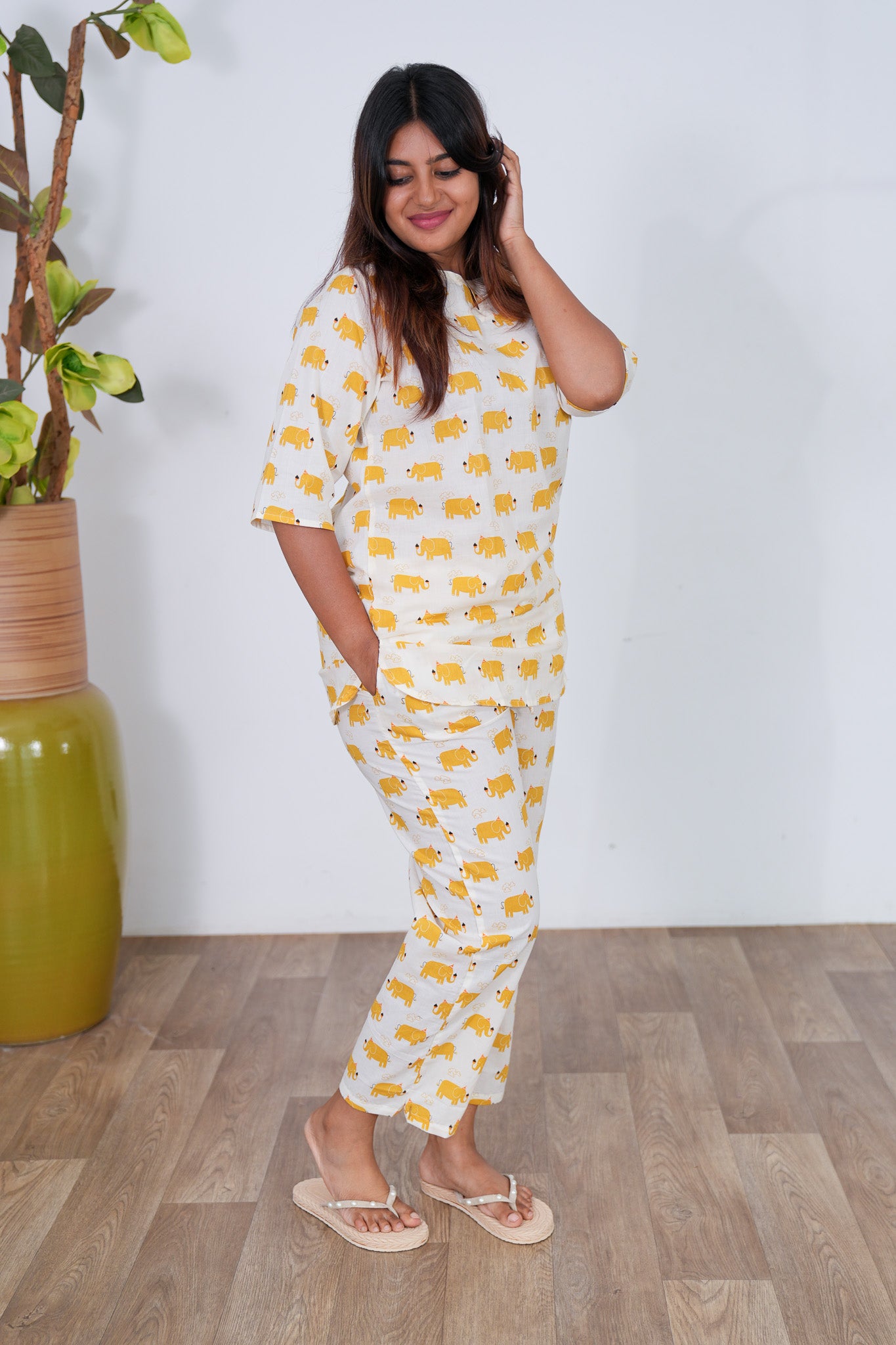 Yellow elephant cotton lounge-sleep wear