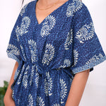 Easy breezy cotton kaftan made for you to feel absolute comfort, elegance and a total stunner at the same time. It comes V neck and tie in the centre with flowy silhouette and floral prints all over.